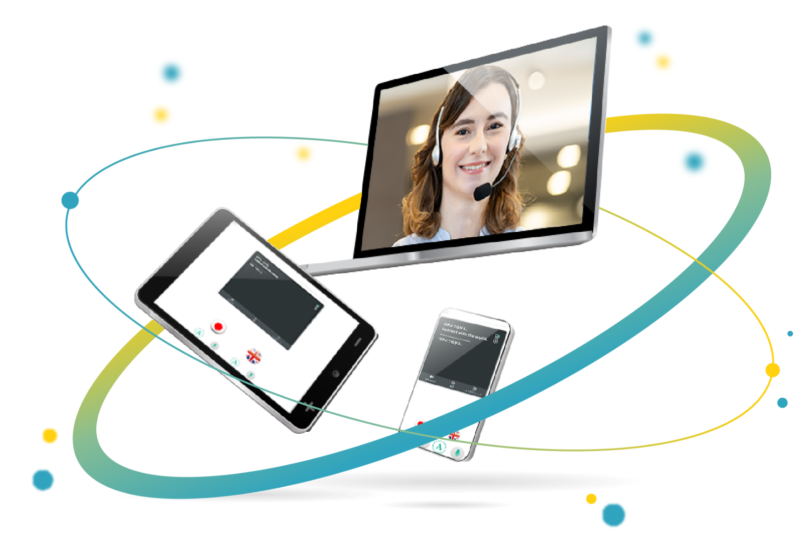 お手元の 端末で繋がる 多言語リアルタイム翻訳× オペレーター通訳